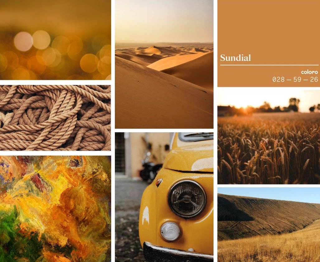 La couleur ocre Sundial s’assortit merveilleusement à d’autres tons naturels comme le beige, le rose pâle, le gris, le vert, le bleu foncé ou différentes nuances de rouge.