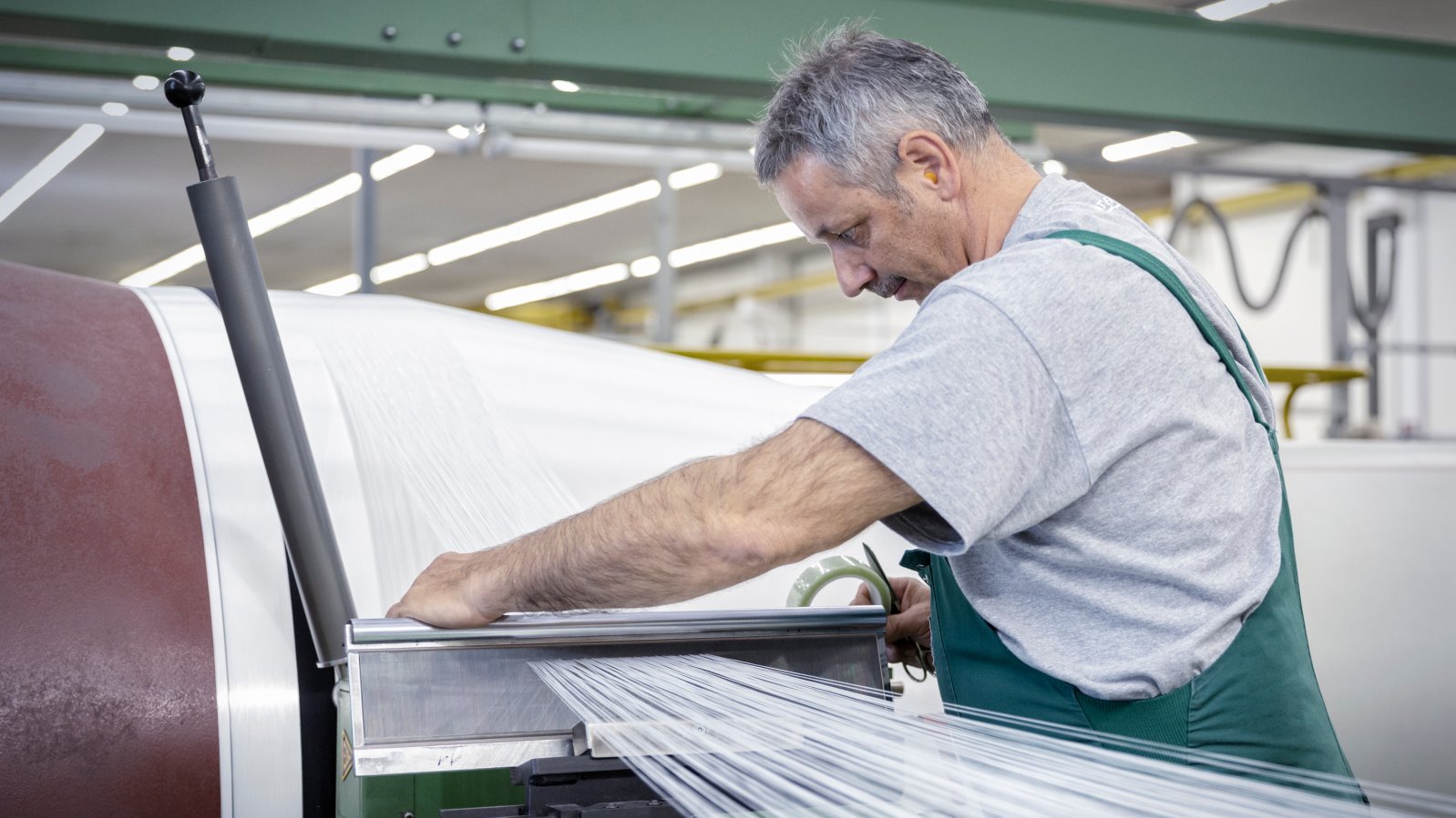 Les bords sont alors coupés proprement. La bande double est coupée en deux rubans puis enroulée. Chaque rouleau est soigneusement muni d’un capuchon de protection à chaque extrémité et conditionné dans un emballage résistant à la saleté et étanche à l’eau avant d’être expédié au fabricant de marquises.