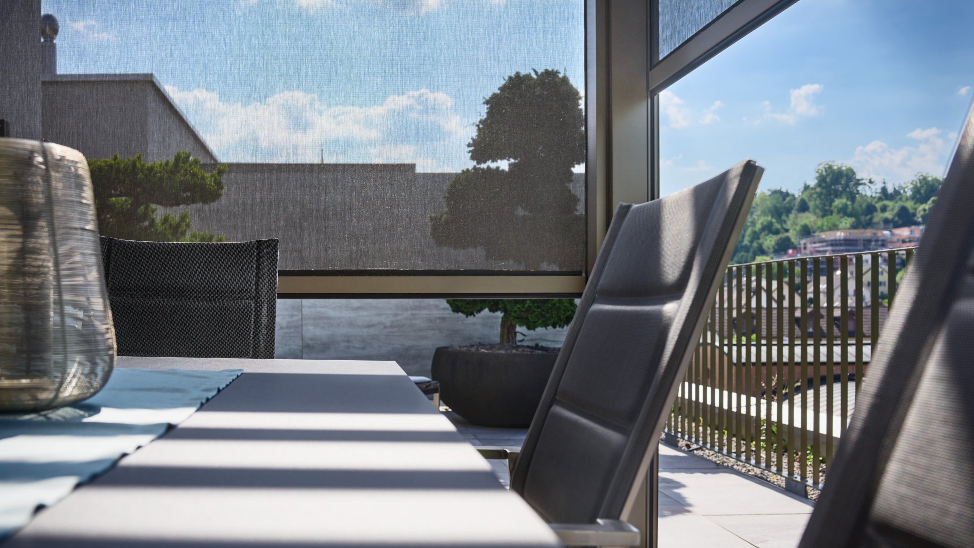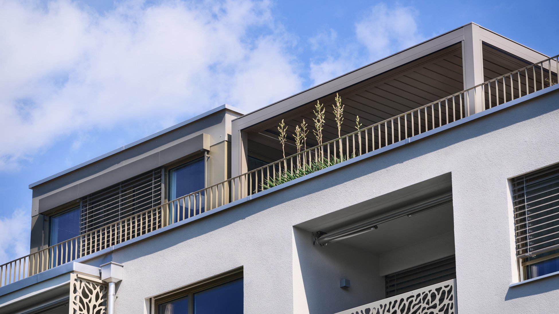 Bien que le montage sur une façade isolante fasse partie de la routine pour des spécialistes de l’ombrage, la façade en brique au rez-de-chaussée requérait un soin particulier pour ne pas faire éclater ou endommager les briques. Pour l’attique, c’était une affaire de millimètres: les galeries pour les jardins d’hiver ont été découpées et installées au millimètre près, de même que les pergolas bioclimatiques choisies pour ombrager l'espace extérieur.