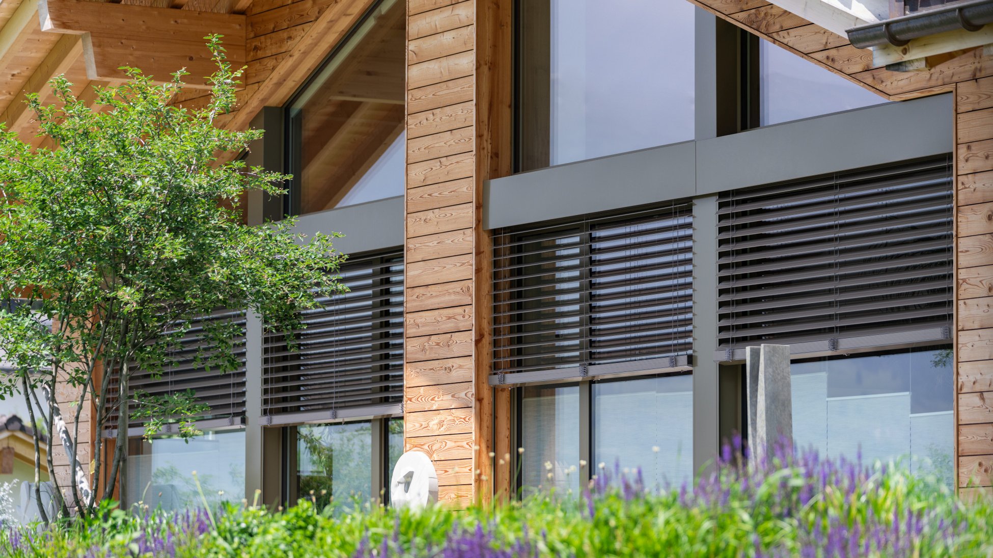 Un détail raffiné concerne les supports intermédiaires des autres fenêtres: ils ont été installés sur la fenêtre sans fixation directe. Cette construction et l’écart généreux entre les stores et les fenêtres permettent d’ajouter sans problème plus tard des moustiquaires. L’écart plus important a simultanément un effet positif sur l’isolation acoustique et thermique.