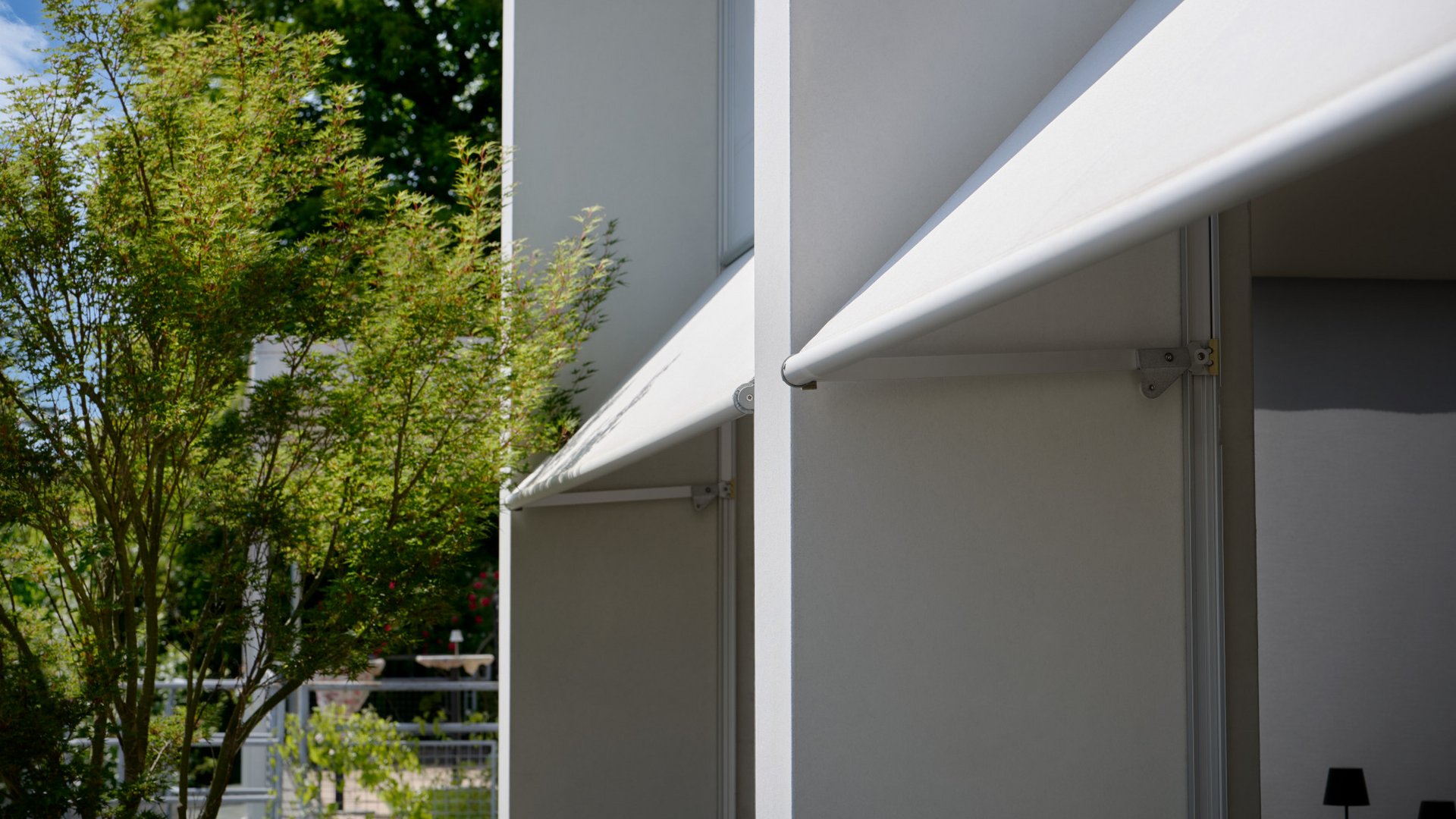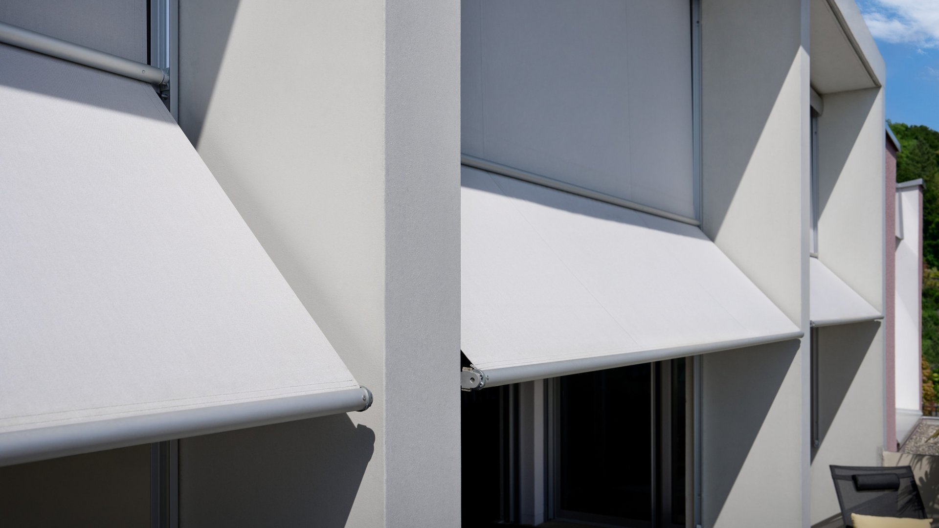 Le maître d’ouvrage a été invité ensuite au show-room de Schenker Storen à Baden. Il a pu y inspecter et y tester les systèmes prévus et prendre sa décision finale. Pour les fenêtres en façade, son choix s’est porté sur le store à projection AS 95 dont les bras de projection sont réglables en continu jusqu’à 180° dans n’importe quelle position et rendent possible un ombrage optimal tout en utilisant la lumière naturelle. Pour les chambres, il a opté pour des stores ZIP verticaux résistants au vent avec une toile standard en exécution opaque, idéaux pour les situations partiellement exposées et la protection contre les regards indiscrets souhaitée.