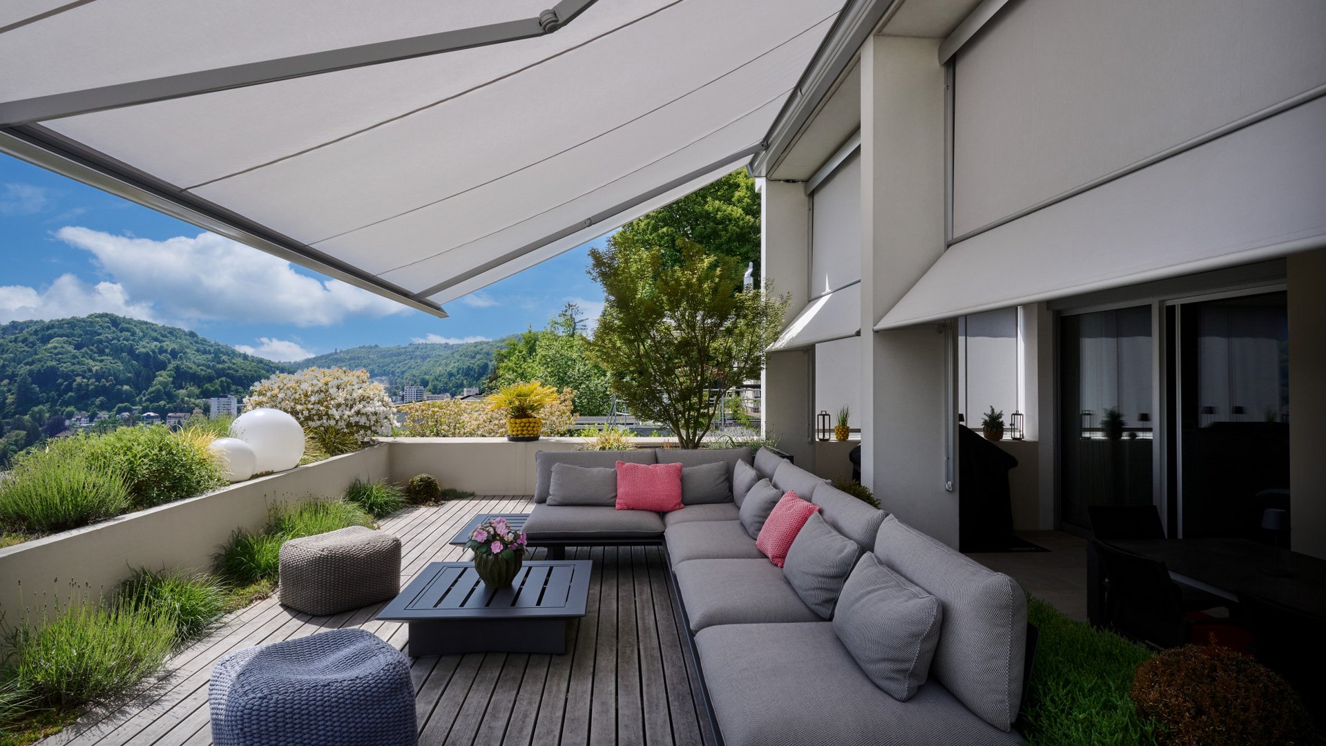 Un ensemble résidentiel qui s’inscrit harmonieusement dans le terrain naturel a vu le jour à Wettingen sur le versant sud escarpé des Lägern. Il est composé d’appartements en terrasse à deux et cinq étages qui suivent les courbes du terrain et offrent une vue impressionnante sur la vallée de la Limmat. Pour pouvoir renoncer largement à des murs de soutènement, l’ensemble résidentiel aux lignes épurées s’oriente sur le terrain, tant pour l’aménagement le long du côté est que pour le rattachement aux parcelles voisines. Schenker Storen a été chargée de la planification et de la réalisation de la solution de stores pour ce projet spécial.