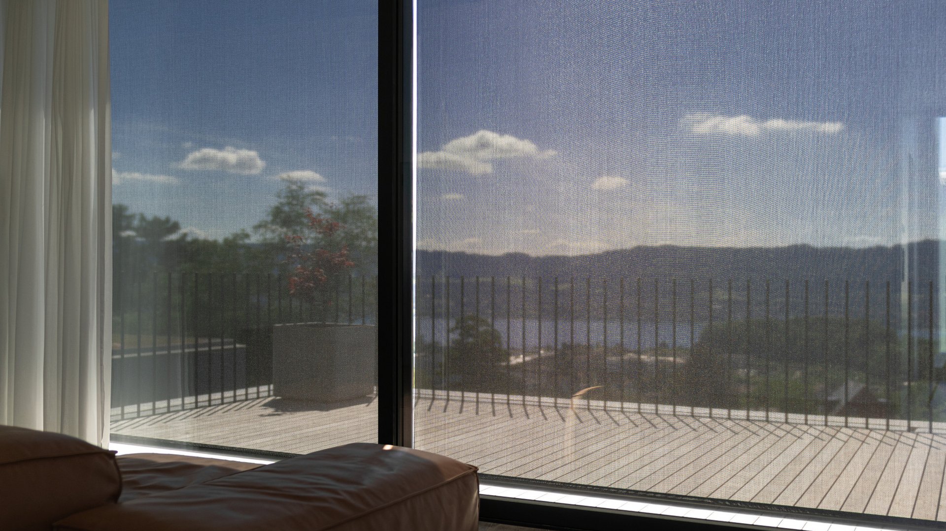 La toile filtre environ 97% des rayons lumineux et fait écran à la lumière éblouissante et aux chauds rayons du soleil, et ce sans obstruer la vue vers l'extérieur. La toile réconcilie donc de manière astucieuse deux contradictions apparentes: une protection efficace contre le soleil et l’éblouissement d’une part et une entrée dosée de la lumière naturelle d'autre part.