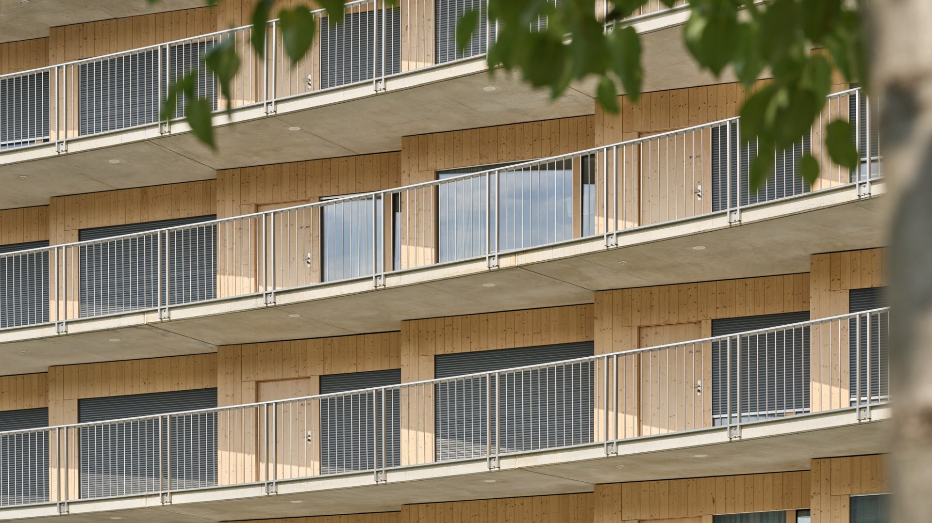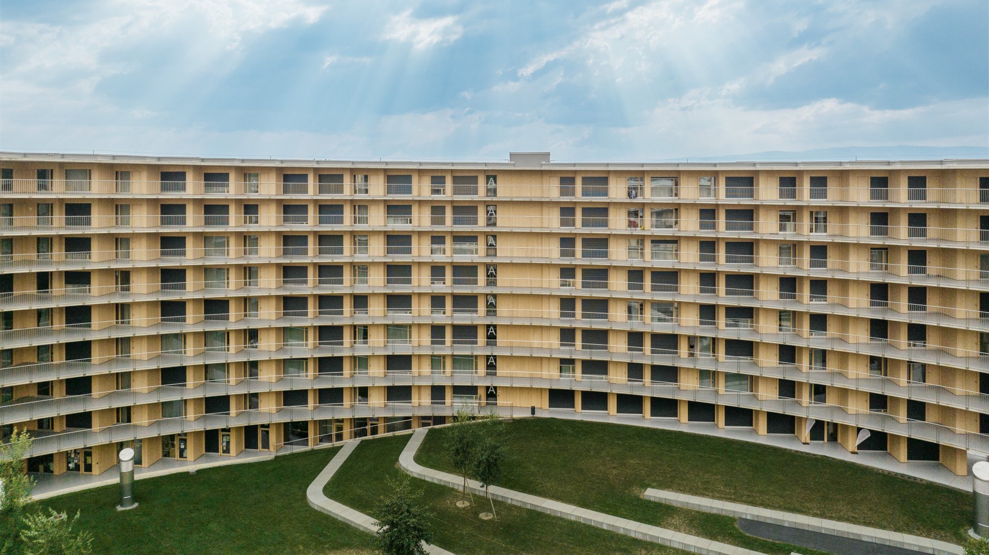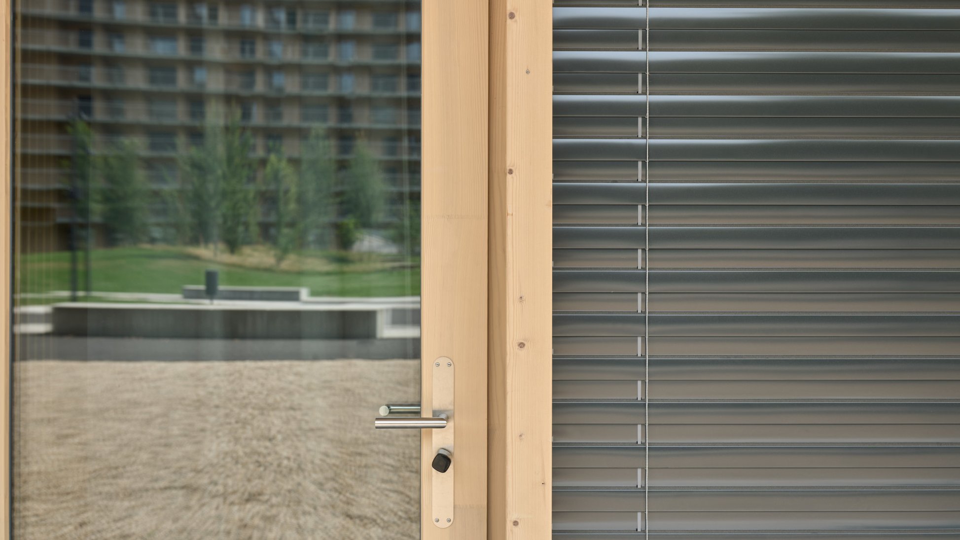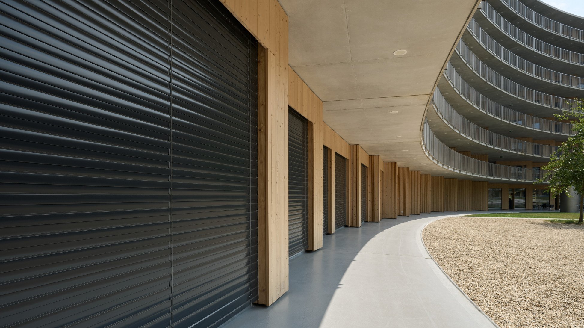 Étudier, dormir, échanger, cuisiner ensemble, rire et faire de nouvelles expériences: tout ceci et bien plus encore a lieu dans une cité universitaire. Des espaces communs qui invitent à la flânerie sont alors aussi importants que la meilleure intimité possible. Et avec un grand nombre de jeunes gens au même endroit, il est naturel que le niveau sonore monte de temps à autre. Dans Le Vortex, la rampe abrite, par exemple, de nombreux moments de vie. En même temps, chaque unité résidentielle s'ouvre sur la rampe avec une façade en verre. Ce sont tous ces paramètres dont il a fallu tenir compte pour une protection adéquate contre les regards indiscrets et le soleil. Le volet à rouleau RL 37 peu encombrant de Schenker Storen offre aussi bien un obscurcissement fiable qu'une protection contre les regards indiscrets pour une meilleure intimité. Ses profils coulissants légèrement bombés sont remplis de mousse, ce qui offre une plus grande rigidité et une meilleure isolation thermique et acoustique. Les inserts d’insonorisation dans les rails de guidage garantissent en outre une manipulation silencieuse. La construction robuste en profils coulissants se caractérise par une bonne longévité et est extrêmement facile à entretenir et à réviser.
