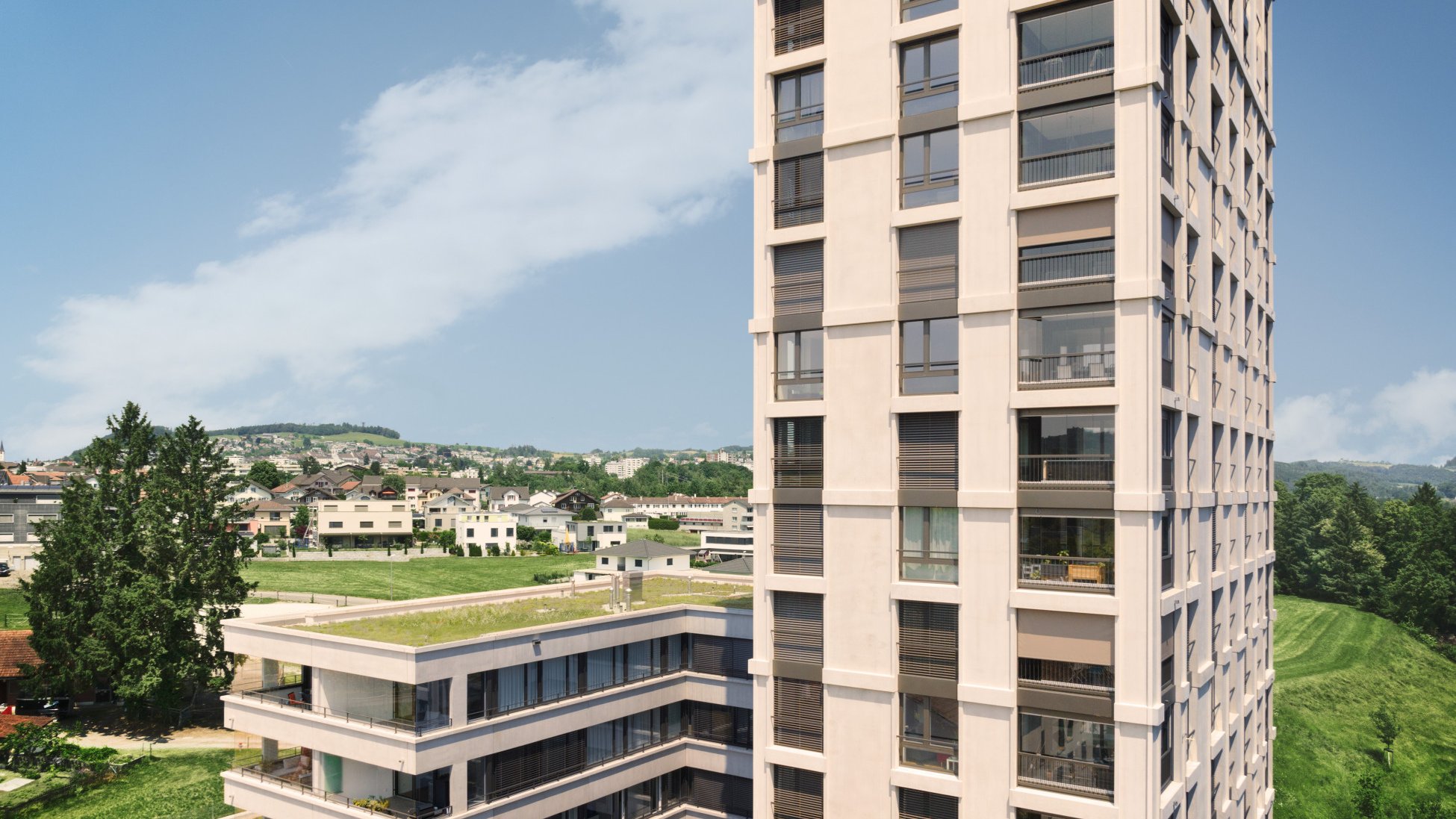 La tour résidentielle s’avère aujourd’hui être un projet phare non seulement pour le quartier, les architectes et les autorités, mais aussi pour Schenker Storen, qui a été chargée de l’ombrage et a pu exécuter le projet dans les règles de l'art et dans les délais. En plus des travaux qui font partie de la routine quotidienne de Schenker Storen, la tour résidentielle a aussi posé quelques défis intéressants, en particulier en ce qui concerne la logistique, l’esthétique, la sécurité et la matérialité.