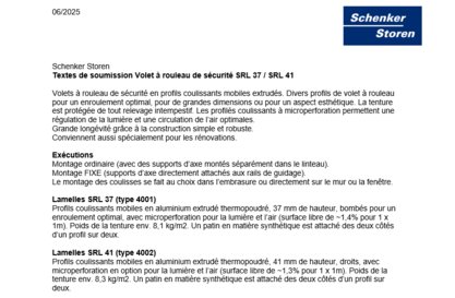 Textes de soumission Volet à rouleau de sécurité SRL 37 / SRL 41