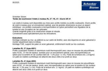 Textes de soumission Volets à rouleau RL 37 / RL 41 / AR 41
