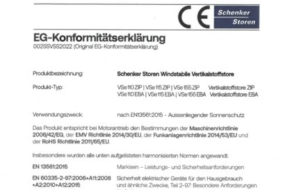 Déclaration de conformité Stores en toile ZIP