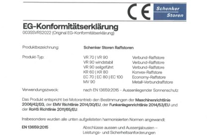 Déclaration de conformité Stores à lamelles