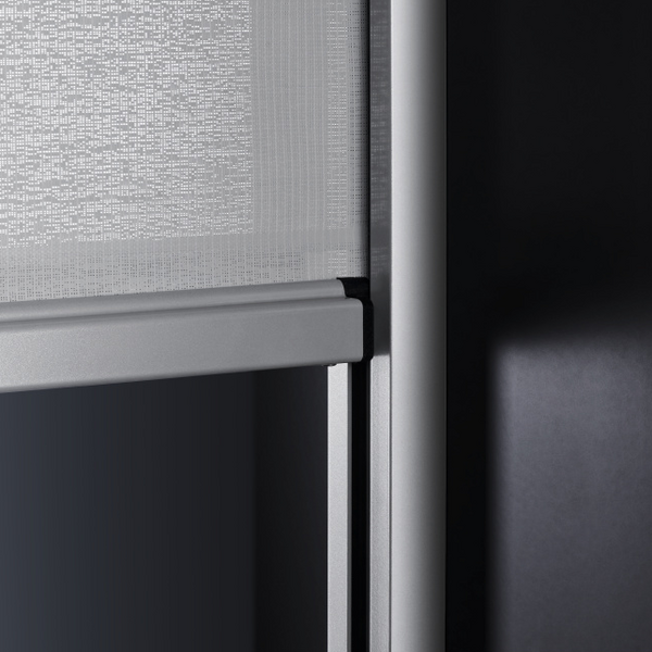 Coulisse continue en aluminium extrudé pour un fonctionnement silencieux et sûr, au choix incolore ou anodisée sans couleur ou thermopoudrée. Montage latéral possible directement sur l’embrasure, enchâssé ou frontal. Système de montage autoportant, le caissons est fixé sur les coulisses profilées.