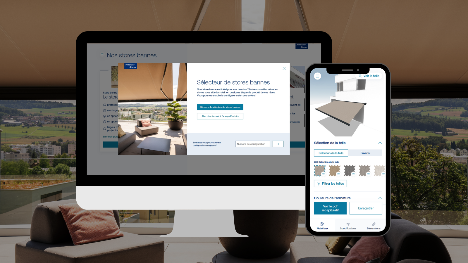 Créez votre store banne idéal en quelques étapes simples. Notre configurateur en ligne vous offre la possibilité de concevoir votre store banne sur mesure à tout moment. À la fin du processus, un PDF récapitulatif est automatiquement généré, vous permettant de contacter directement l’un de nos partenaires pour obtenir rapidement un devis personnalisé.